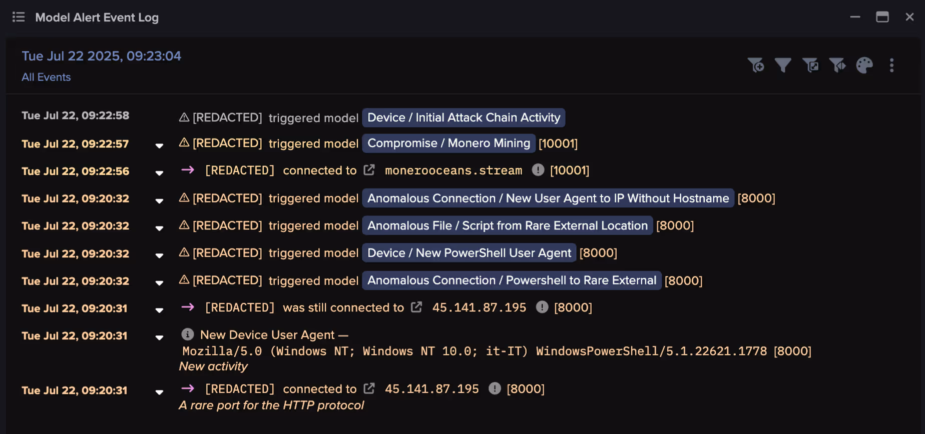 The initial compromise was detected on July 22, when Darktrace / NETWORK observed the use of a new PowerShell user agent during a connection to an external endpoint, indicating an attempt at remote code execution.