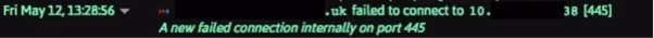 Simultaneously, infected devices scanned random external IPs on port 445 (SMB), to continue spreading the worm to other devices on the internet: