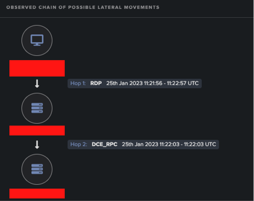 Darktrace subsequently observed multiple devices establishing various chains of connections that are indicative of lateral movement activity, such as unusual internal RDP and WMI requests. While there may be devices within an organization that do regularly partake these types of connections, Darktrace recognized that this activity was extremely unusual for these devices.