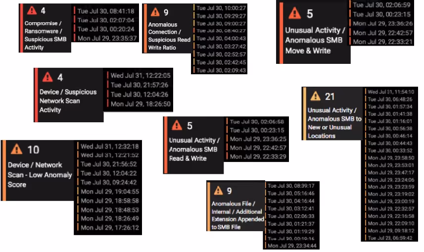 This incident put Darktrace in the unique position of observing a ransomware attack wherein none of the alerts were seen or actioned by the internal IT team, demonstrating what such an attack can do absent any intervention and response. Had the company actively monitored its Darktrace deployment, the security team would have received and actioned the alerts in real time, as its thousands of users do on a daily basis.