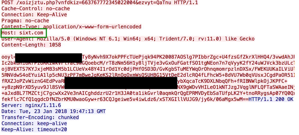 Upon closer inspection it became clear that the malware used indeed the hostnames sixt.com and breitling.com for the HTTP requests – but it was sending the HTTP requests to IP addresses owned by the attacker, not to the IP addresses that sixt.com and breitling.com resolve to on non-infected devices.