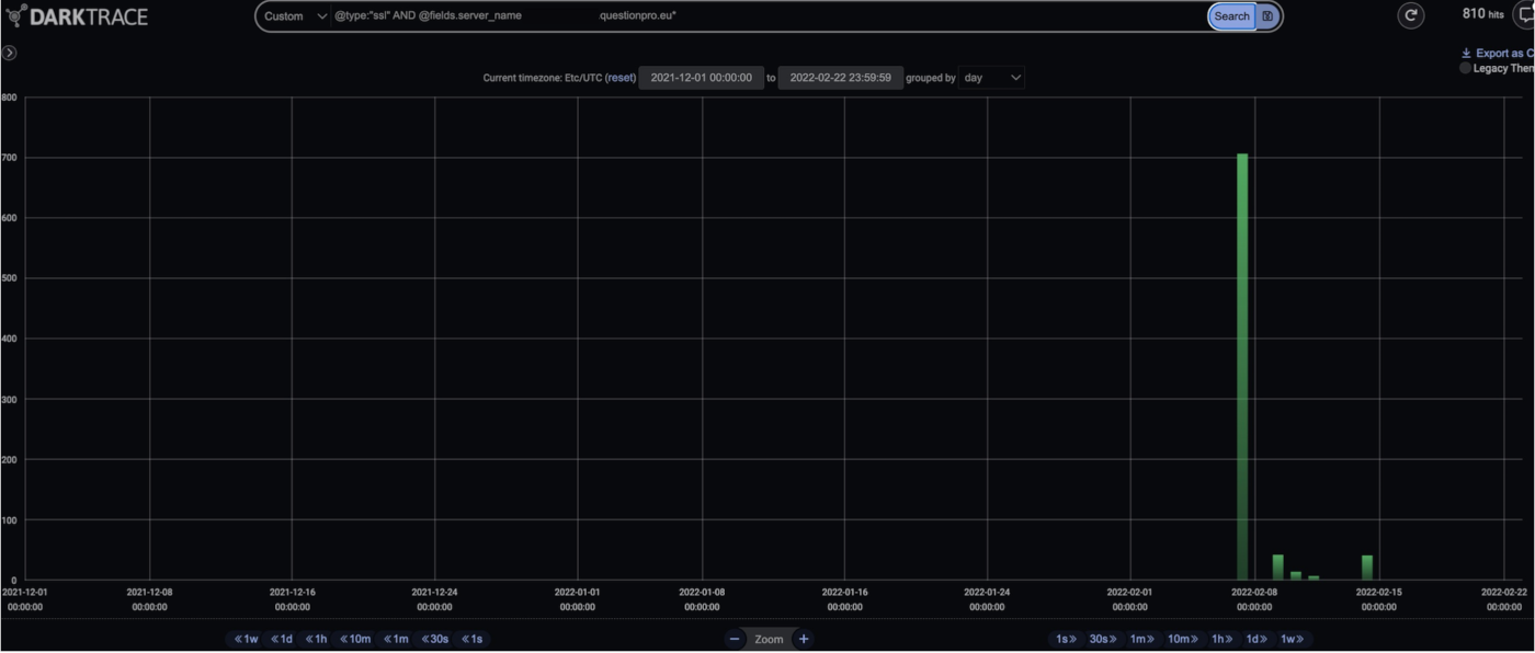 Since Antigena Email does not have visibility of internal-to-internal emails, the phishing email was delivered fully weaponized to hundreds of internal mailboxes. On February 7, after the phishing email was sent from the compromised internal account, more than twenty internal devices were observed making SSL connections to the relevant questionpro[.]eu endpoint, indicating that many internal users had clicked the phishing link and possibly revealed their account credentials to the attacker.