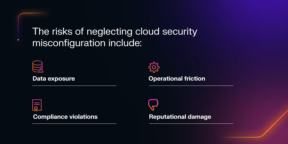 The risks of neglecting cloud security misconfiguration include: