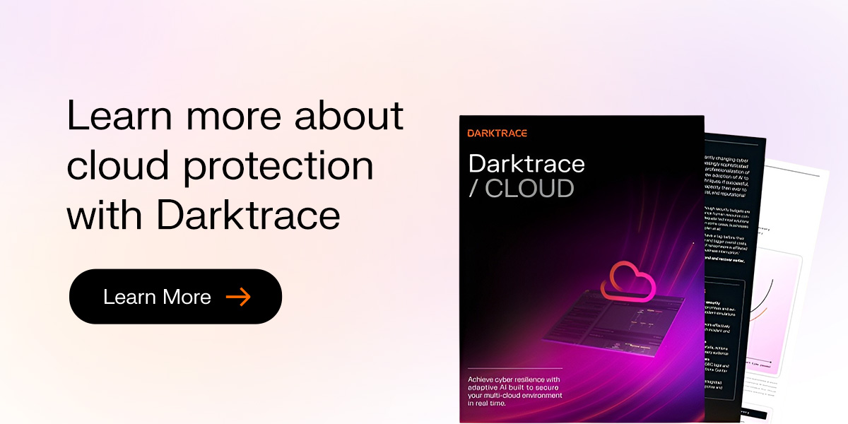 Darktrace is a leading cybersecurity partner with advanced, AI-powered solutions built for the dynamic cloud computing environment and evolving adversarial techniques. Our comprehensive technology empowers your team with real-time threat detection capabilities, proactive risk management, and enhanced compliance. Learn more by exploring our blog, reviewing the Darktrace / CLOUD solution brief, or downloading the CISO's Guide to Cloud Security.