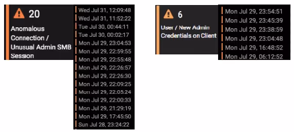 The first sign of attack was the highly unusual use of an administrator account not previously seen on the network, suggesting that the attackers had gained access to the account outside the limited scope of the Darktrace trial before moving laterally to the monitored environments. Had Darktrace been deployed across the digital infrastructure, the initial hijacking of the account would have been obvious right away. Nevertheless, Darktrace alerted on the anomalous admin session repeatedly and in real time, as shown below: