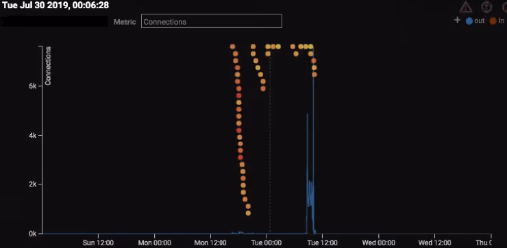 Once the Trickbot infection had begun, Darktrace observed C&C communication back to the attackers. And whereas many devices exhibited anomalous behavior, Darktrace pinpointed one such device at the nexus of the infection. The below image illustrates the plethora of suspicious connections detected on this single device: