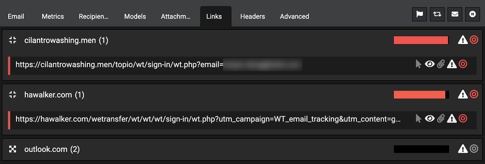 Figure 6: Two links in the email were considered highly anomalous and threatening