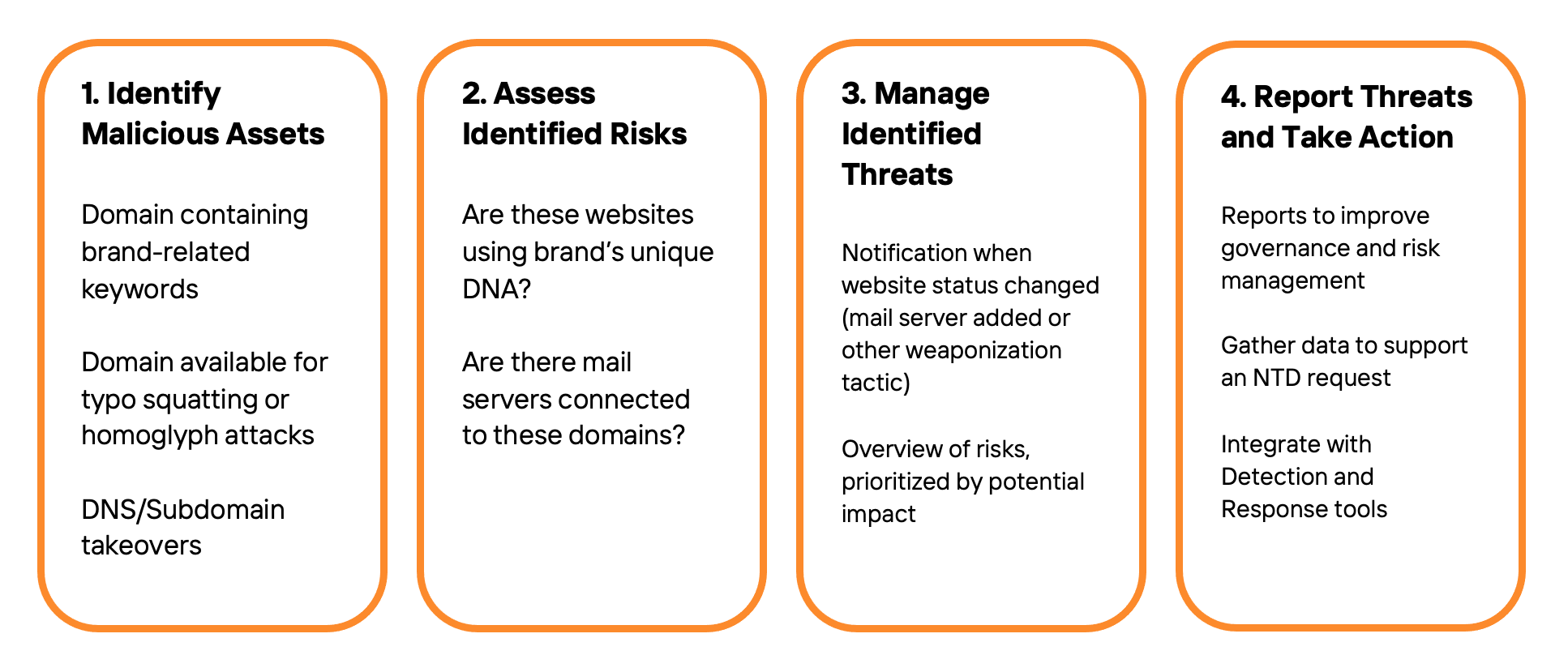 Protecting the brand identity and external attack surface can seem like a daunting task for security teams, especially in an age where monitoring internal systems proves enough of a challenge itself. Moreover, how often should the team perform this brand abuse monitoring? Companies can try to search every six months, every quarter, even every month, however there would still be gaps between when a threat actor launches an attack and when the security team discovers it. This is when AI becomes a tremendous ally, as it works at a speed and scale that human teams cannot.