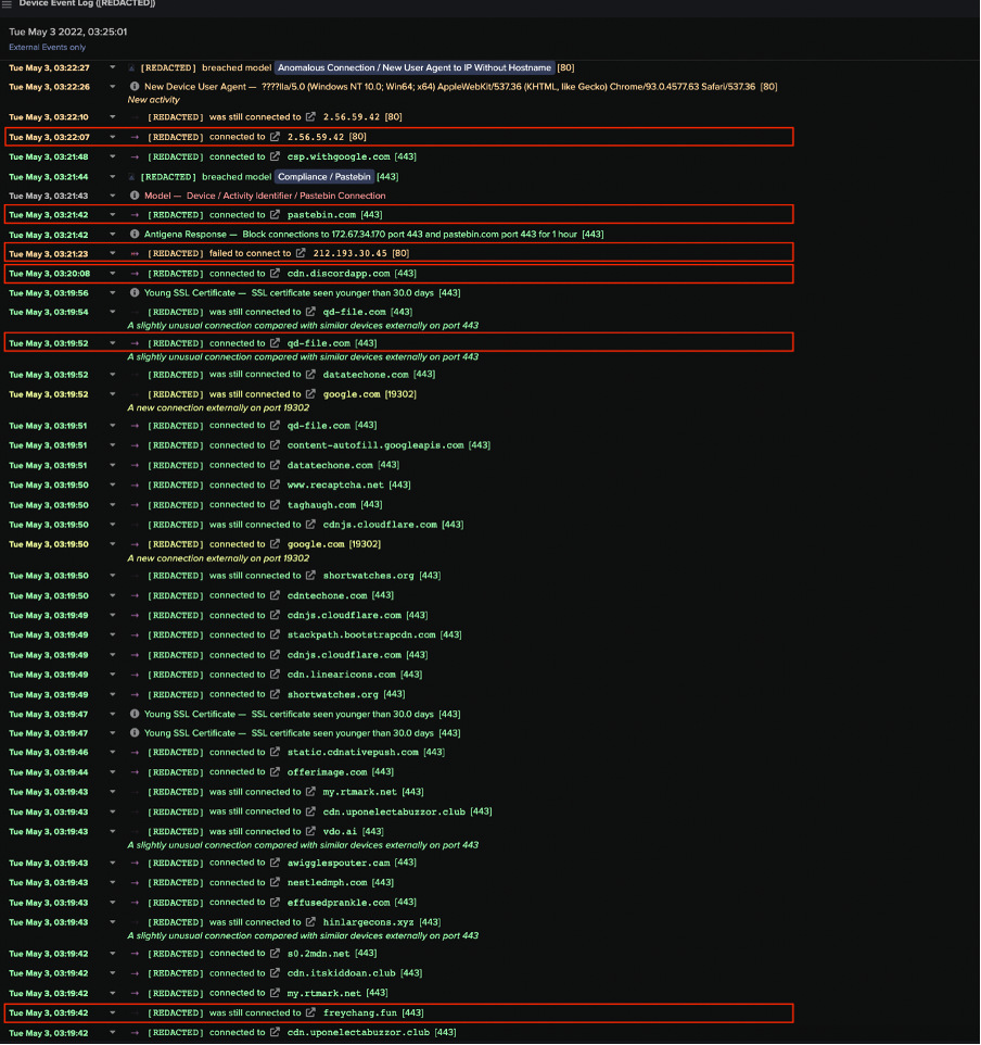 Throughout 2022, Darktrace observed overlapping patterns of network activity within the environments of several customers, which reveal the archetypal steps of a PrivateLoader infection. Despite the changes made to PrivateLoader’s network-based features, Darktrace’s Self-Learning AI was able to continually identify infected bots, detecting every stage of an infection without relying on known indicators of compromise. When configured, RESPOND was able to immediately respond to such infections, preventing further advancement in the cyber kill chain and ultimately preventing the delivery of floods of payloads onto infected devices.