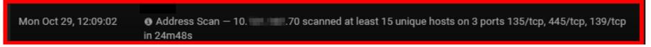 The other server conducted some targeted address scanning on the network on October 29, employing typical lateral movement ports 135, 139 and 445: