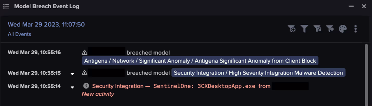 CrowdStrike and SentinelOne, two of the major detection platforms with which Darktrace partners through security integrations, initially revealed that their platforms had identified the campaign appeared to be targeting 3CXDesktopApp customers in March 2023.