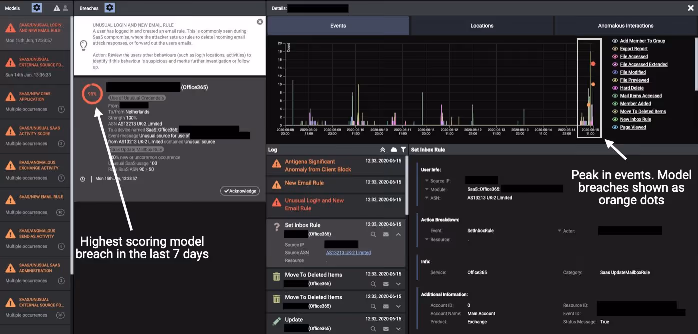 Darktrace model detections: