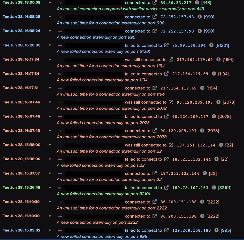 - Anomalous Connection / Multiple Connections to New External TCP Port