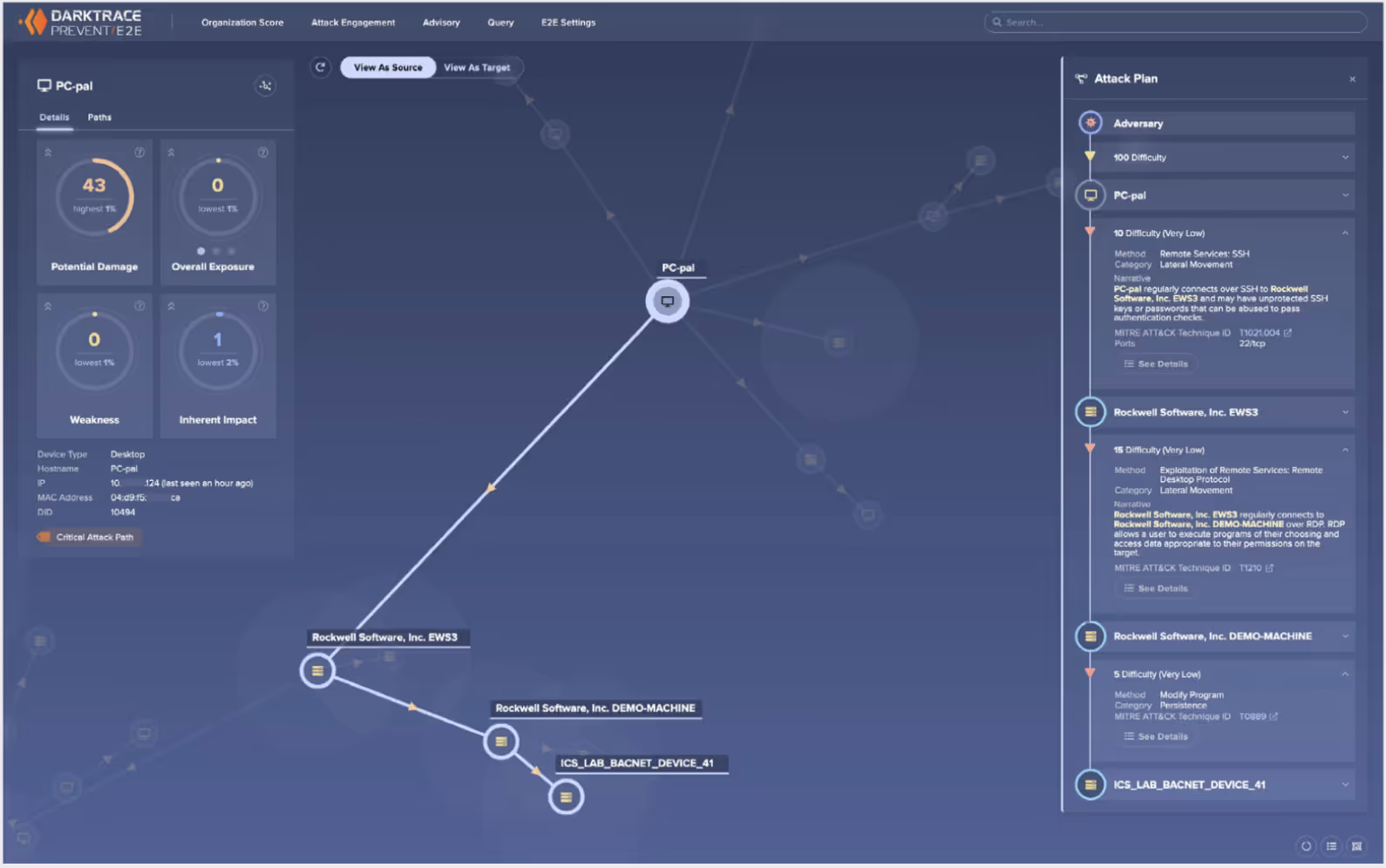 Figure 2: A critical attack path which starts with the compromise of a PC in the internal IT network, and ends with a PLC in the OT network. Each step is mapped out to the real world TTPs including abuse of SSH sessions and the modifications of ICS programs