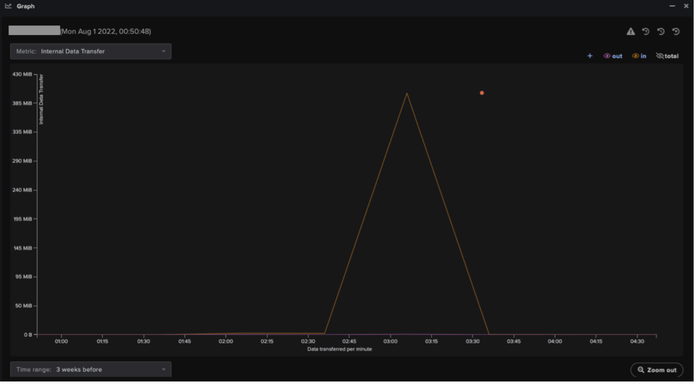 Figure 3: A screenshot showing a spike in data uploaded externally from the breach device.