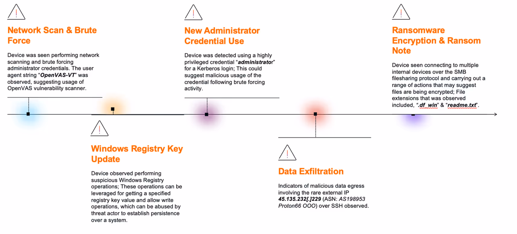 These marked the first instances of authentication using the “administrator” credential across the customer’s environment, suggesting potential malicious use of the credential following the earlier brute-force activity.