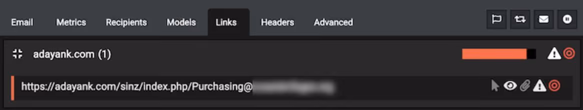 The emails contained a link which Darktrace’s AI identified as an 100% rare domain, indicating no devices across the organization had ever previously accessed it. The links also contained the recipients’ email addresses, suggesting that it led to a fake login page intending to trick an employee into inputting sensitive data.