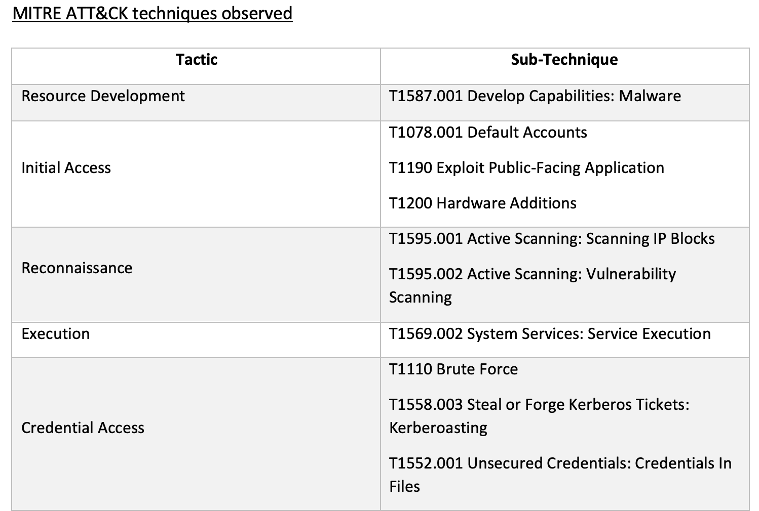 Over the next two days reconnaissance and lateral movement activities occurred on a wider scale, originating from multiple network devices. A wide variety of techniques were used during this period: