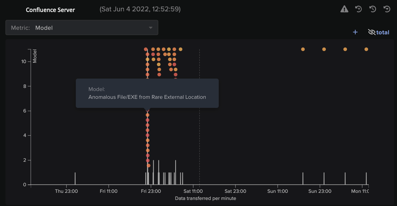 The first detected in-the-wild exploit for this zero-day was reported to Atlassian as an out-of-hours attack over the US Memorial Day weekend.[5] Darktrace analysts identified a similar instance of this exploit only a couple of days later within the network of a European media provider. This was part of a wider series of compromises affecting the account, likely involving multiple threat actors. The timing was also in line with the start of more widespread public exploitation attempts against other organizations.[6]