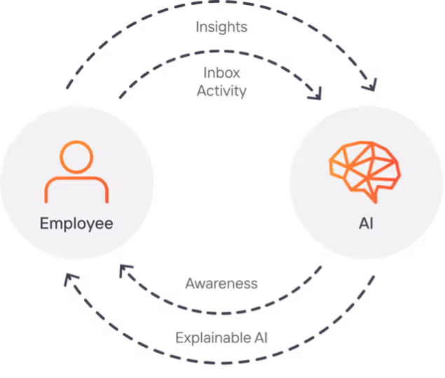 The employee-AI feedback loop educates employees so that they can serve as additional enrichment data. It determines the appropriate levels to inform and teach users, while not relying on them for threat detection.