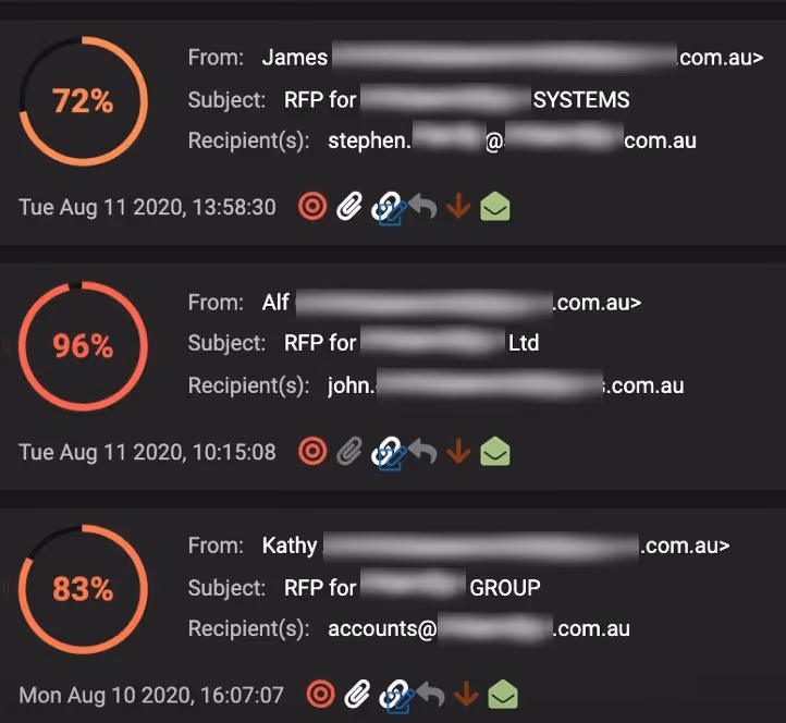 The company was under sustained attack from a cyber-criminal who had already performed account hijacks on a number of their trusted partners. Abusing their trusted relationships, the attacker sent out several tailored emails from these partners’ accounts to the Australian company. All used the same convention in the subject – RFP for [compromised company’s name] – and all appeared to be credential harvesting.