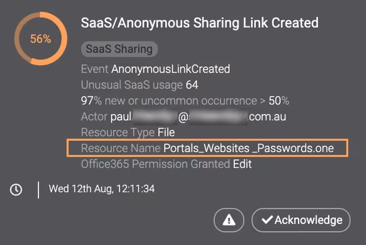 Shortly afterwards, Darktrace detected an anonymous sharing link being created for a password file.