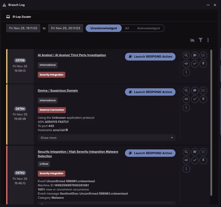 MDE is used as an example above, but Darktrace’s EDR integration capabilities extend beyond MDE to other EDRs as well, for example to Sentinel One and CrowdStrike EDR.