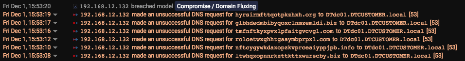 Additional domain fluxing alerts were triggered within 30 minutes of the device joining the network. The only reason that this highly suspicious activity was allowed to persist for that period of time was that the security administrator was at lunch.