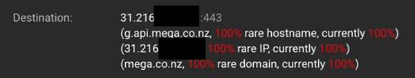As well as the full hostname and actual IP used for the download, Megaupload is 100% rare for this organization.