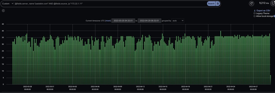 Figure 2: A section of the constant SSL connections that the device was still making to ‘pastebin[.]com’ even in the month of April, which resembles beaconing scheduled activity
