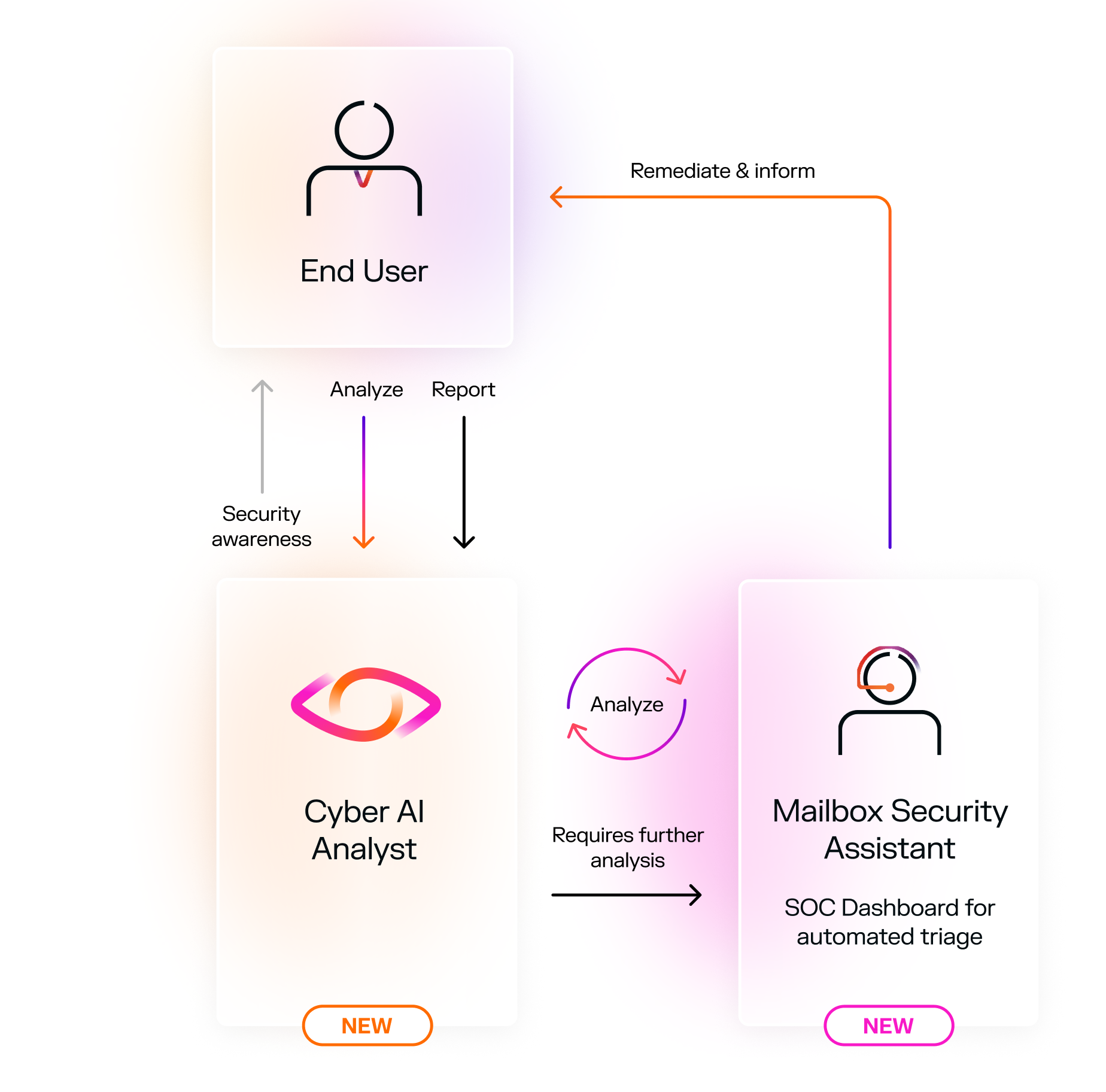 Decrease the load on your security team by uplifting end users to report fewer false positives by giving Cyber AI Analyst feedback to each employee as they interact with their mail